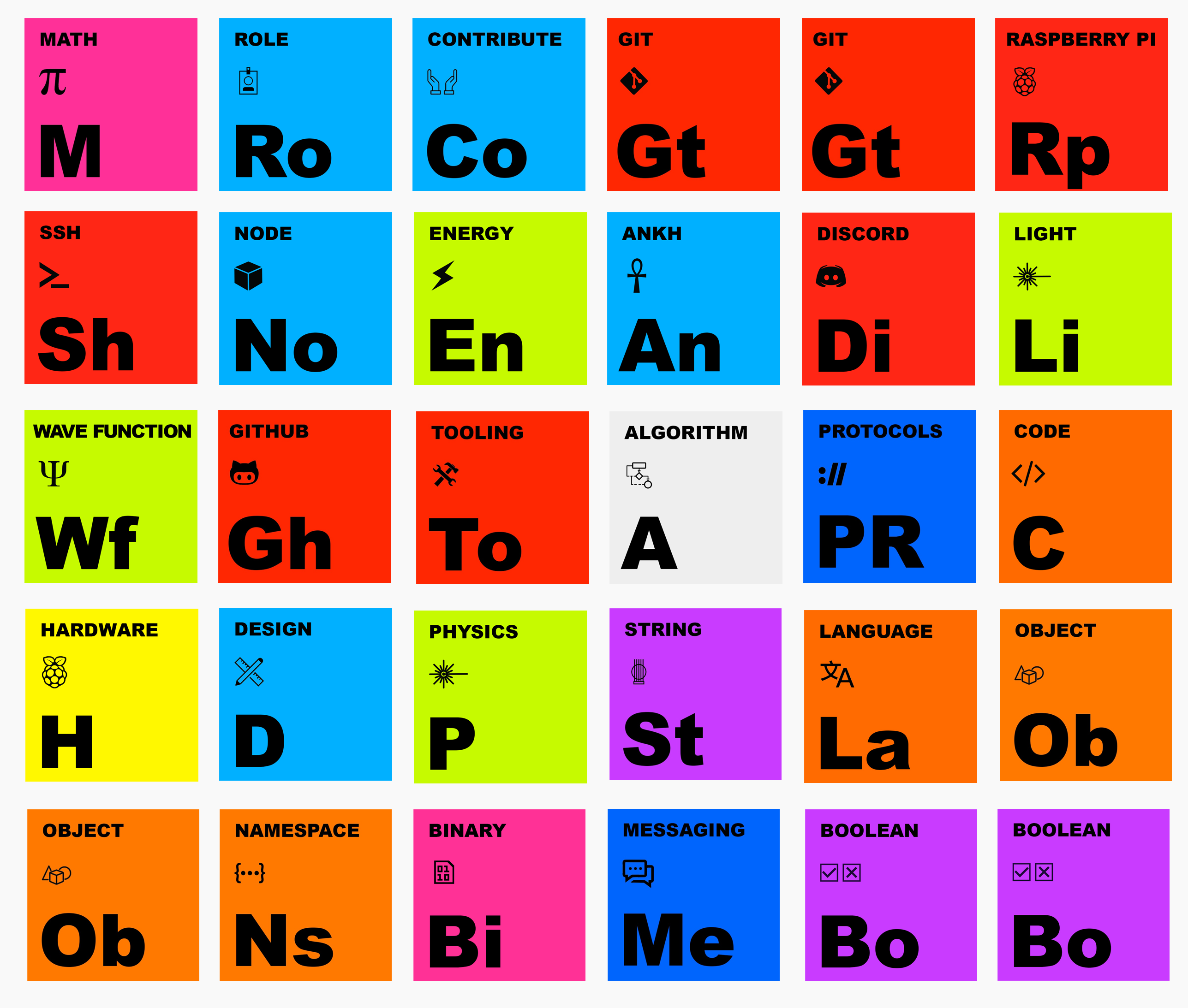 The first rendition of the Node Chronicles iPhone and Android app featured an ability to nest computer science elements inside digital texts, which could be unlocked and earned for reading accomplishments. A core database and GraphQL database was been designed featuring 10 Branches of Technology. Each element acts as a storage container for the defintion, metadata, links to resources, and threaded contextual conversations. In the future, AxiomX elements might become NFTs granted to those who study them and work within their scope.